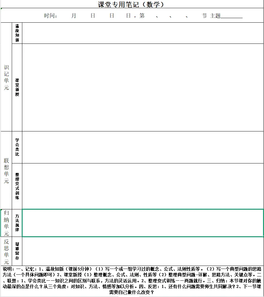 要将笔记方法论研究纳入教研常规工作,把笔记的规范化记录、高效化利用作为集体备课的固定议程,组织教师开展专题研讨,结合教学实践不断优化笔记指导方法,提升教师的笔记指导能力。同时,完善评价功能,将笔记质量纳入学生的学习过程性评价,作为学业评价的重要指标,让学生重视笔记的记录与利用。通过科学的笔记管理,不仅能提升学生的学习效率,更能培养学生严谨的学术习惯、系统化的思维能力,为学生的长远学习与发展奠定坚实基础。