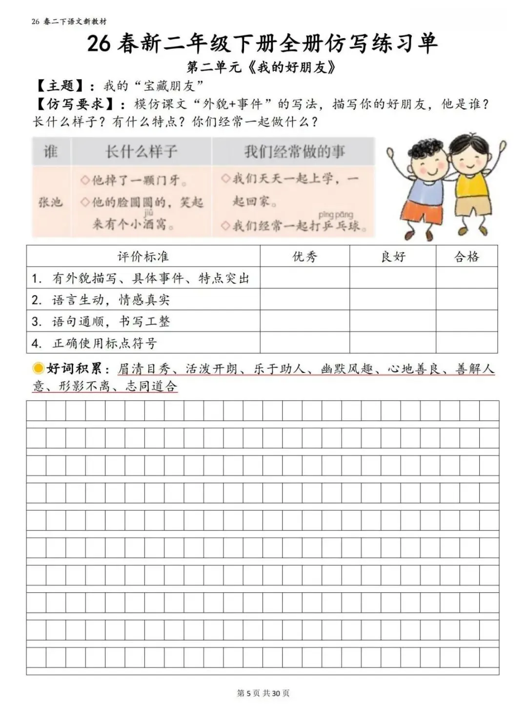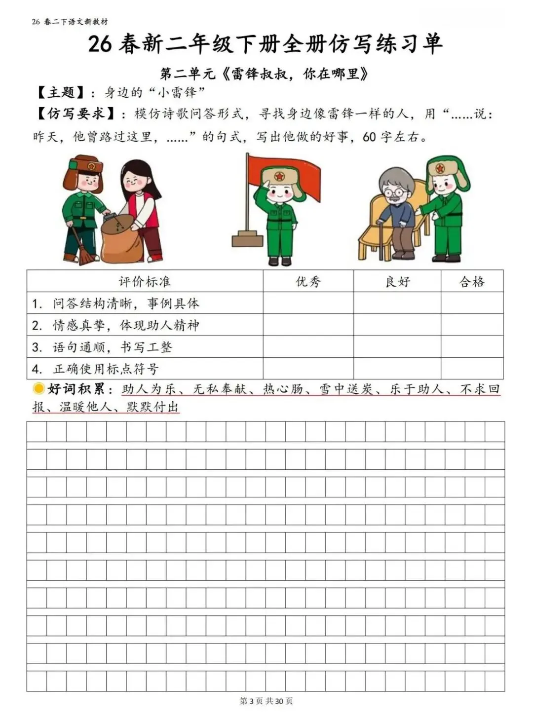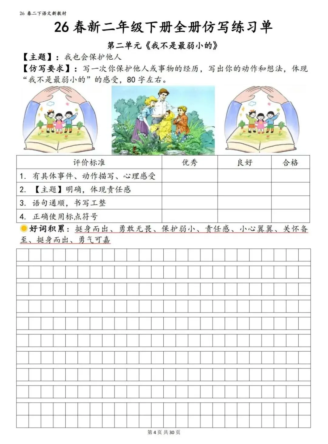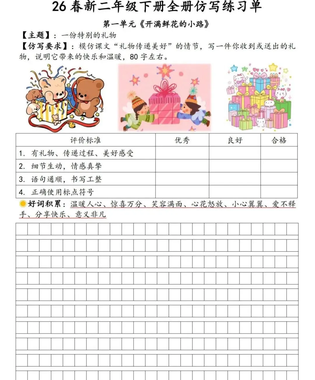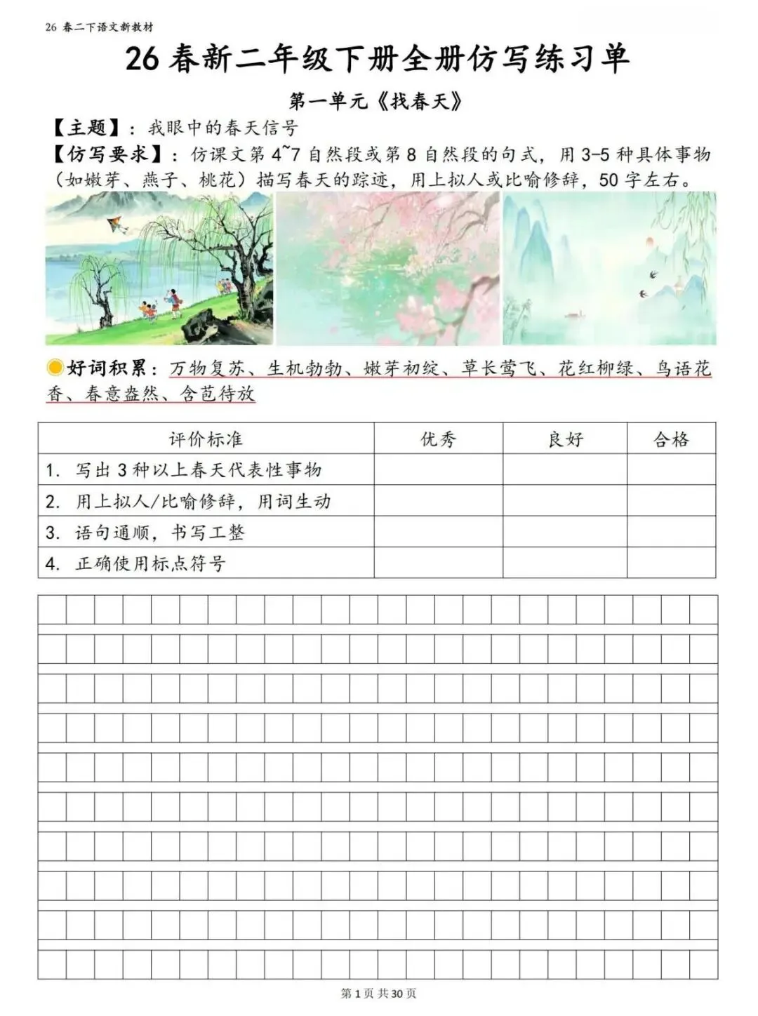 字、词、句字帖,一次性搞定预习+练字!