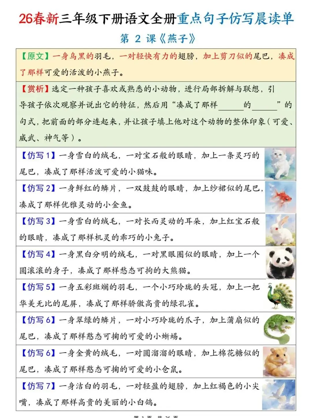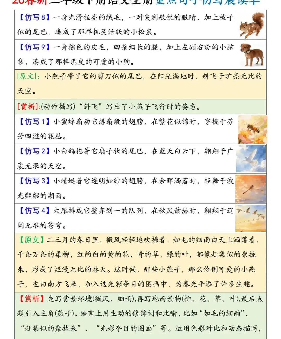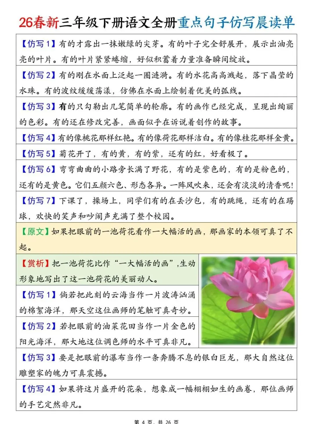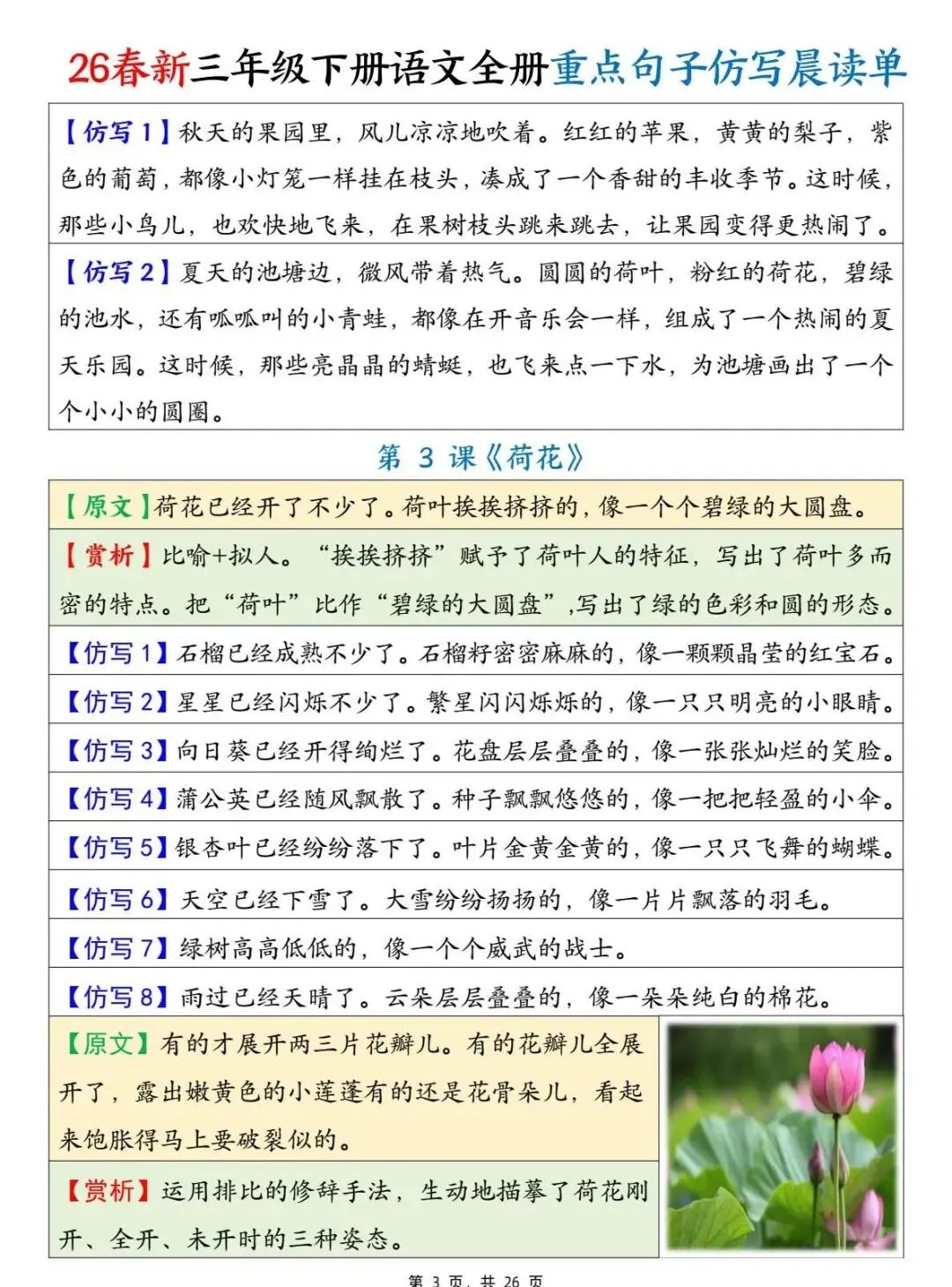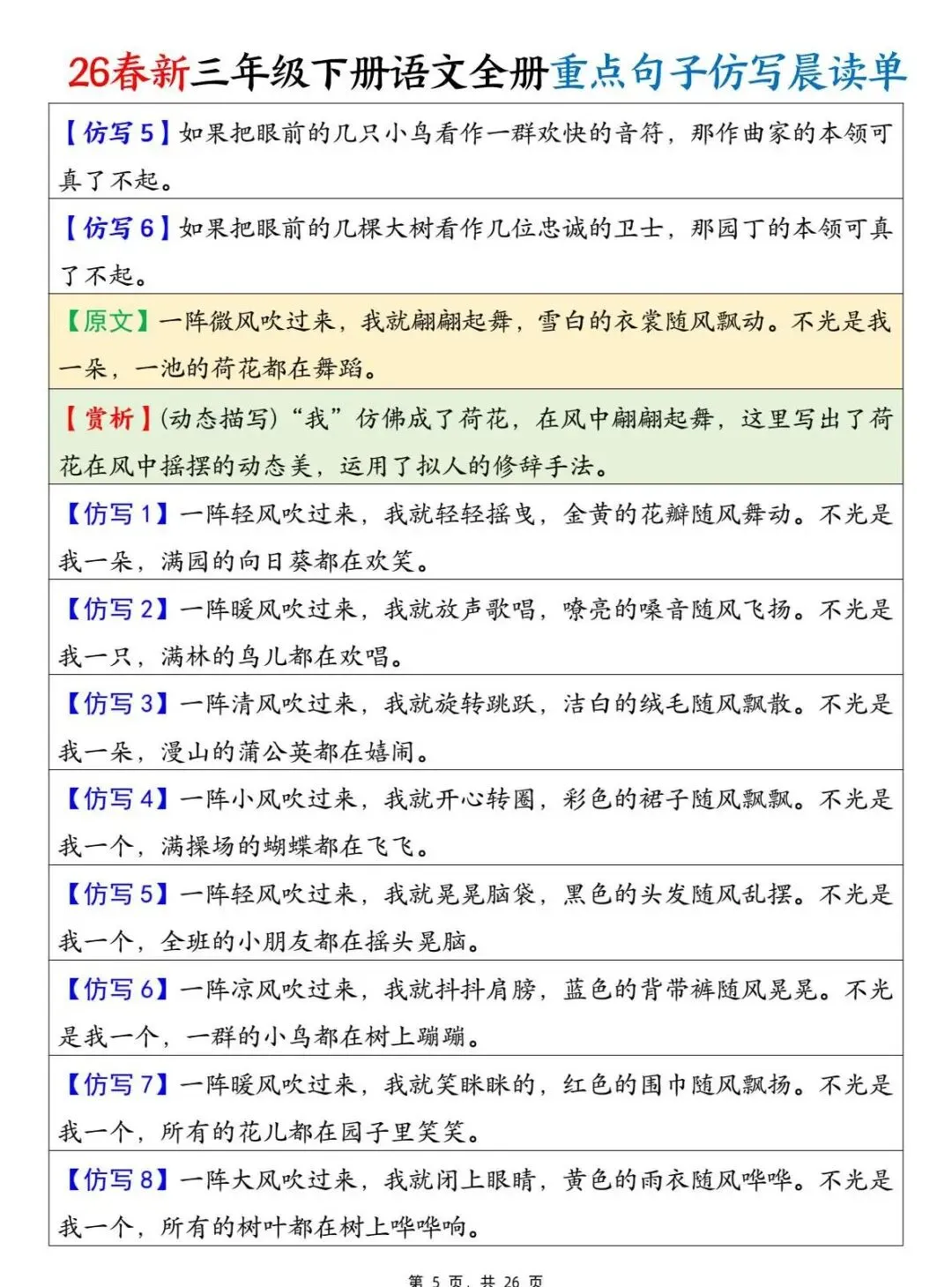 三年级下语文 全册重点句子仿写晨读单