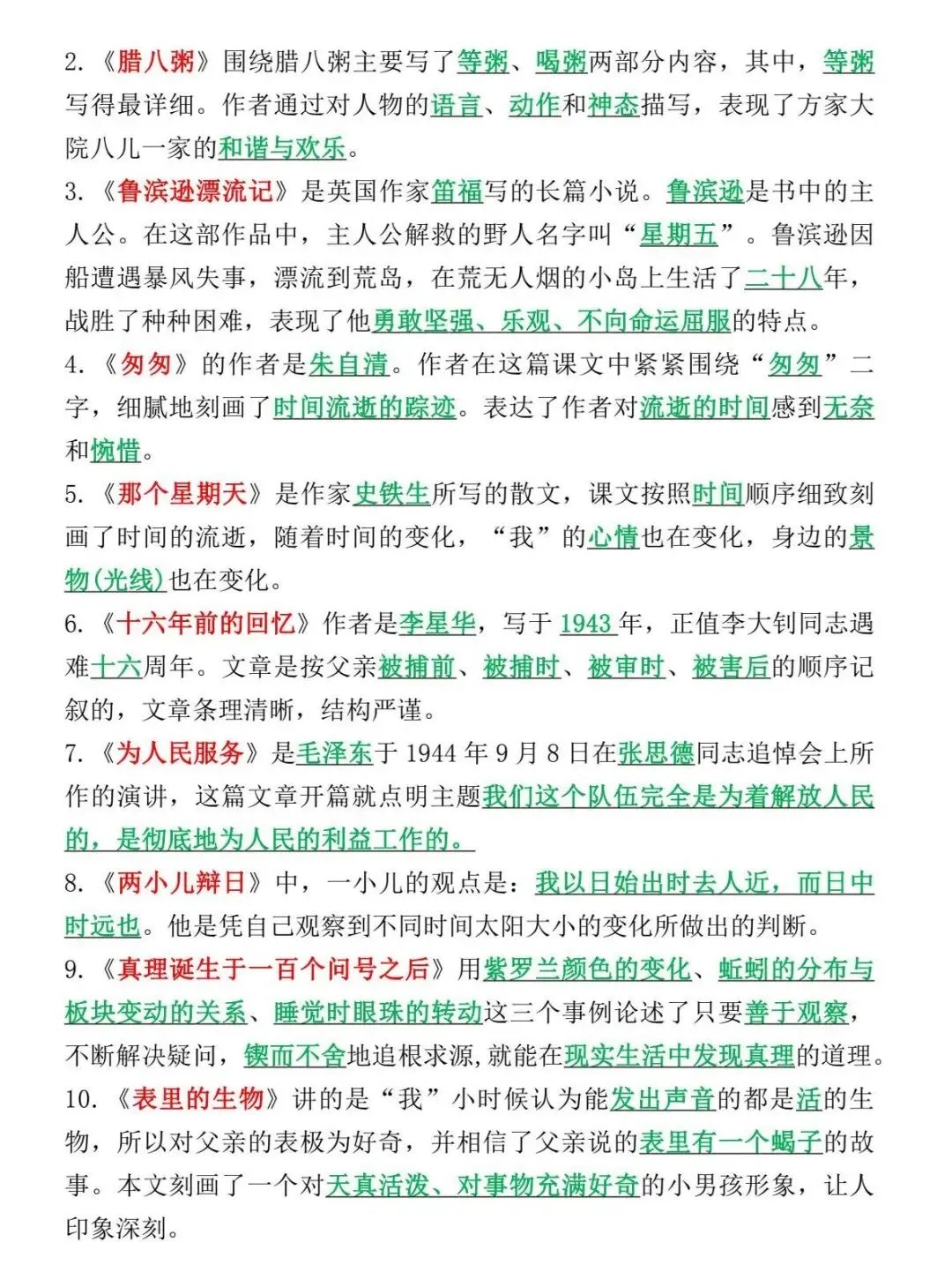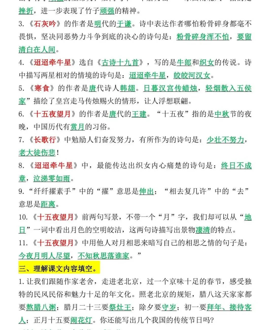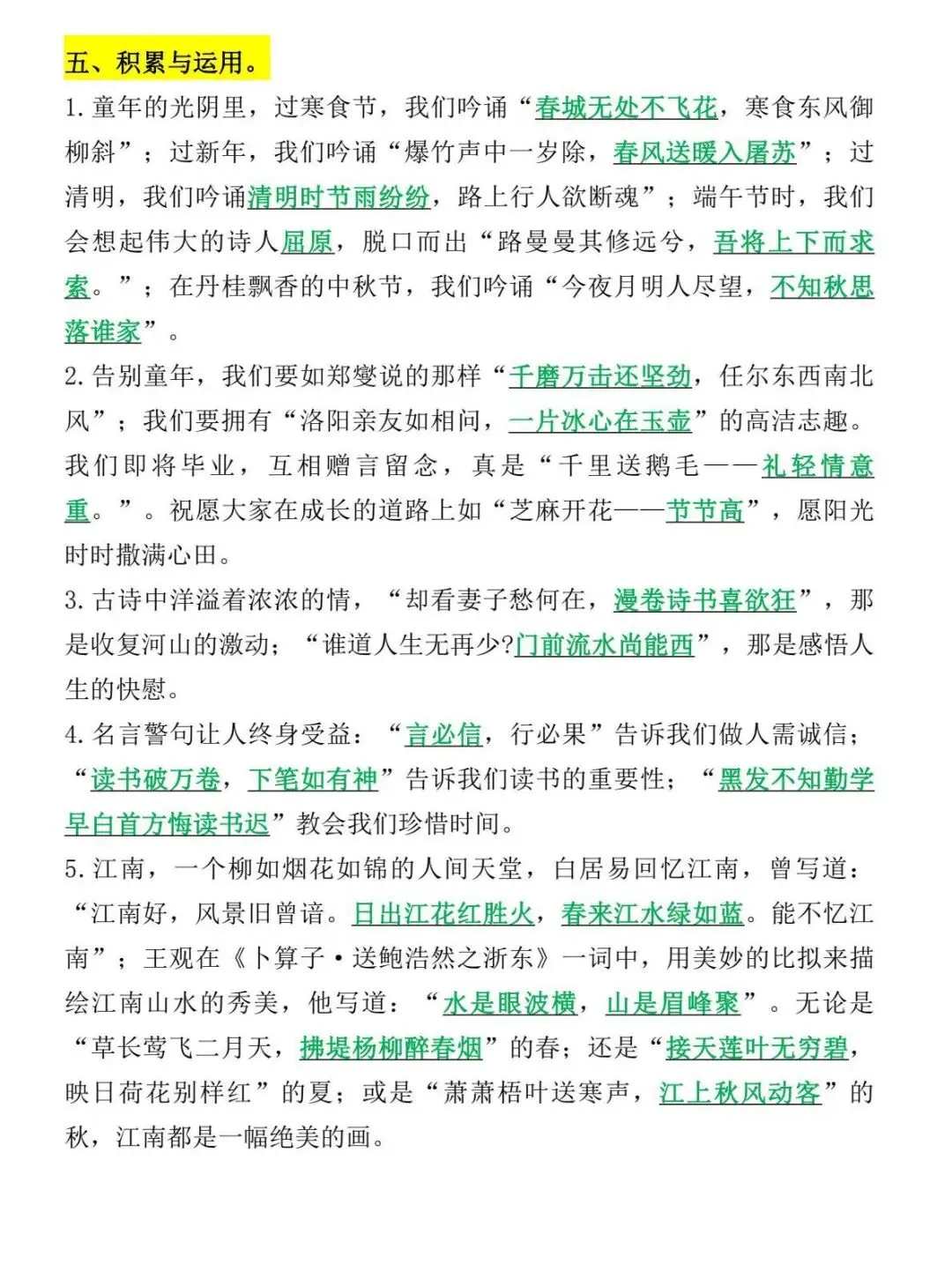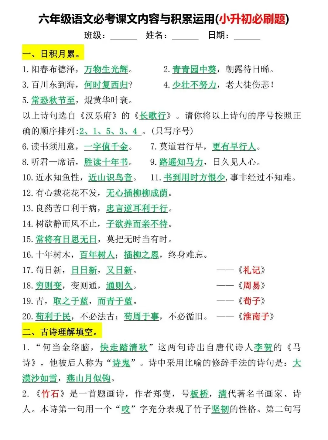 六年级下语文 必考课文内容与积累运用(小升初)