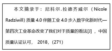 尼科尔.拉德齐威尔(NicoleRadziwill)指出:质量4.0来源于“工业4.0”,是一个全新的质量观点,是在当前具有潜在颠覆性的数字化变革时期追求卓越绩效的代名词,质量4.0包括质量4.0 工具、质量4.0 主题、质量4.0 价值主张这三个方面。