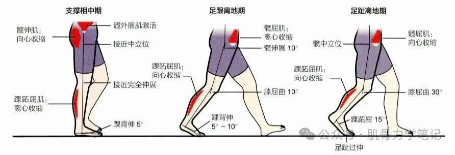 步行支撑中期到末期,身体重心前移时,需要脚(尤其是前脚掌)用力“蹬地”来维持推进和稳定。这个“蹬地”的力量,主要来自踝关节的“跖屈”(绷脚尖动作)肌群。