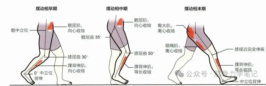 1. 关节角度:在步行支撑期,膝关节伸直的幅度超过了中立位(0度),即大腿(股骨)与小腿(胫骨)的夹角向后打开了。