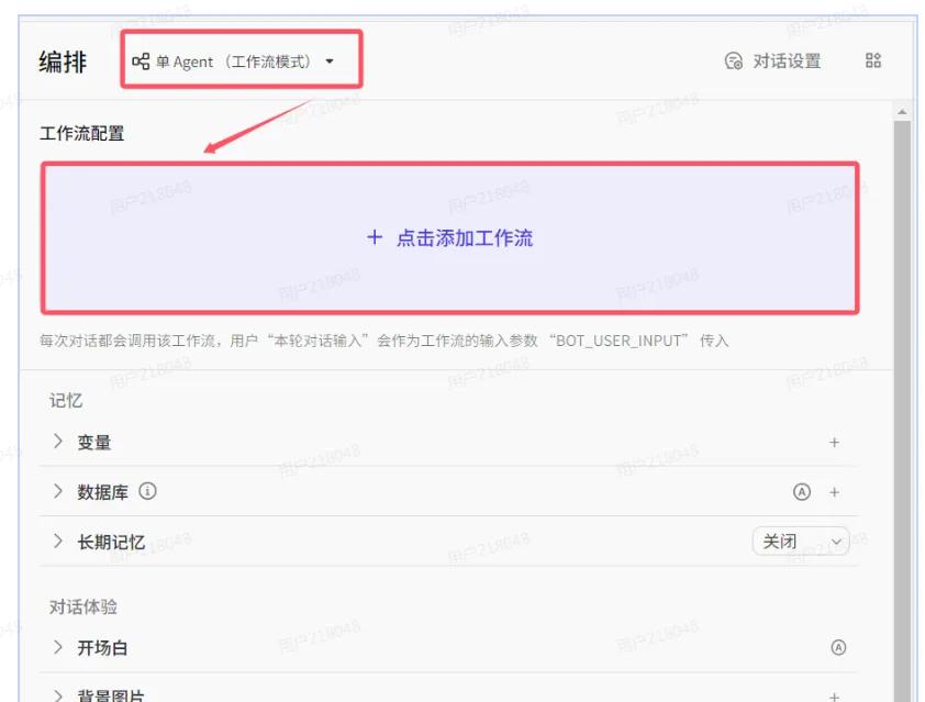 单Agent (工作流)适合于专门调用工作流并且工作流中传参单一的情况,从上面截图可以看出,这个模式不能调用其他额外的技能以及知识库,其他功能受限。