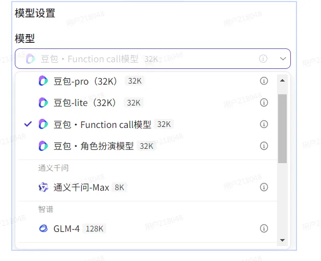 你可以在智能体的编排页面为智能体选择一个合适的大模型,例如对于长文生成或优化相关的智能体选择一个支持长文本的大模型、对于具有复杂业务逻辑的智能体选择一个支持Function call 的大模型。
