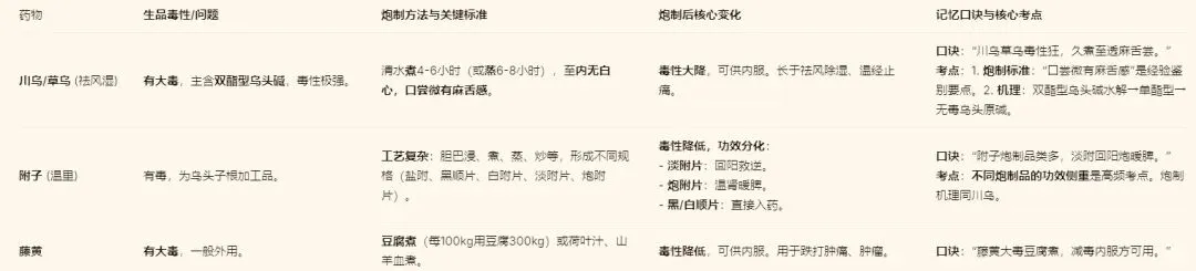 第一类:大毒药材——煮制以保安全(核心考点)