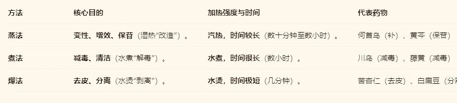 三、 燀法核心药物炮制精析表(存菁为要)