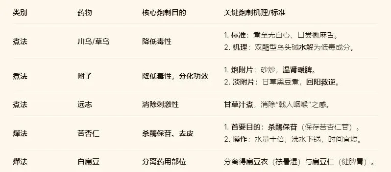 二、 煮法核心药物炮制精析表(减毒为要)