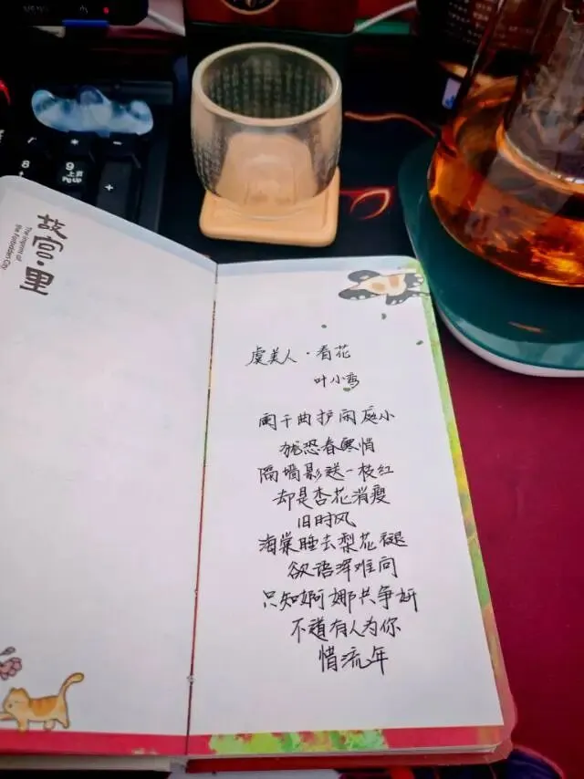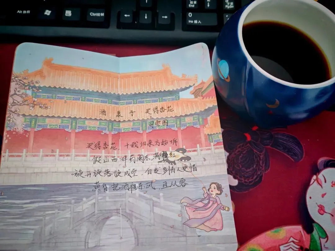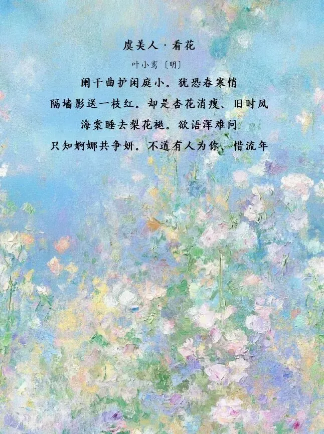 隔帘见杏花消瘦,枕卷听流年浅唱。一句“为你惜流年”,道尽花开落间的温柔怅惘——原来真正的惜春,是懂盛放之喜,也疼凋零之寂。阑干护春寒,杏花递春信,海棠睡去梨花褪。提笔抄下这首词,像接住一段跨越时光的心事:世间最动人的,从来是默默为流年掬一捧在意。 惜流年,是杏花消瘦时的一眼回望,更是花开花落间的深意——为你,岁岁皆有在意。“不道有人为你惜流年”,原来惜的不是花,是每一个悄悄感知时光的自己。春寒悄,杏花瘦,流年长。最终,我们把春日的怅惘,酿成了指尖的温柔。