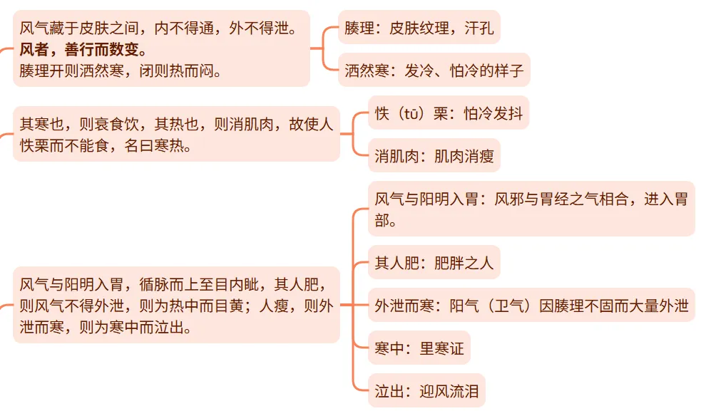 原文:风之伤人也,或为寒热,或为热中,或为寒中,或为疠风,或为偏枯,或为风也。 其病各异,其名不同。 或内至五脏六腑,不知其解,愿闻其说。(风邪伤害人体的时候不同的病症表现)