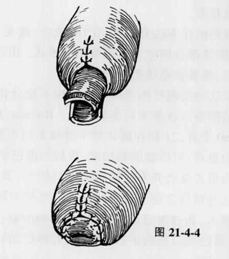 另一种是横行剪开尿道末端0.5cm使成两瓣,将尿道瓣分开分别与皮肤缝合,使黏膜外翻呈乳头状。