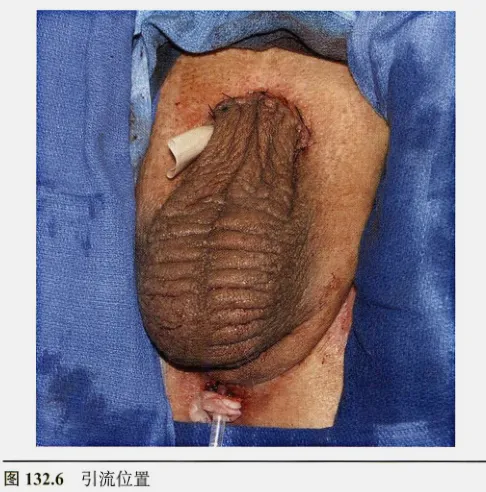 缝合切口:彻底冲洗所有创面,检查无活动性出血。在阴茎根部原切口处,放置一根橡皮引流片,从切口低位引出。用3-0可吸收缝线分层缝合浅筋膜和皮下组织,关闭阴茎根部切口。