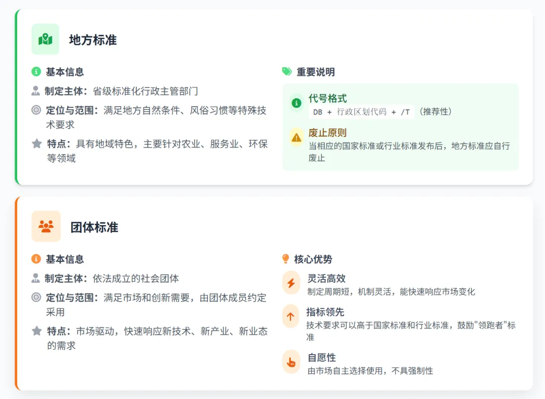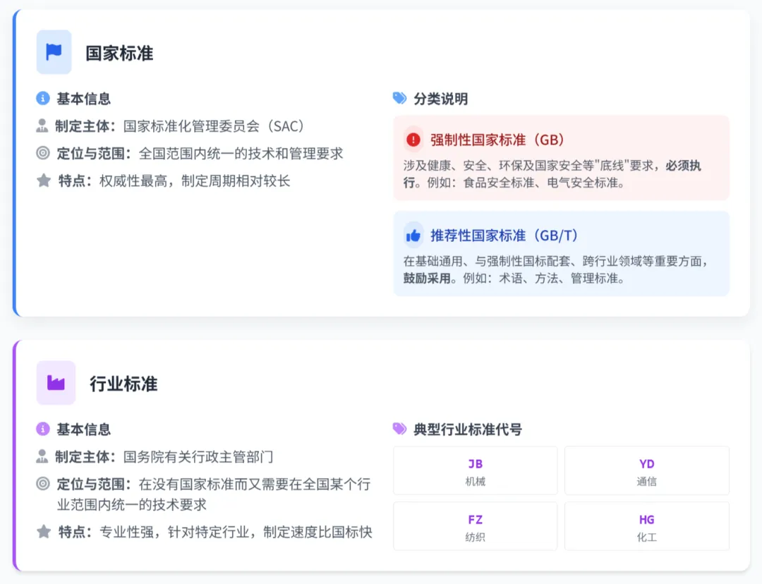 标准是指农业、工业、服务业以及社会事业等领域需要统一的技术要求,包括国家标准、行业标准、地方标准、团体标准和企业标准。