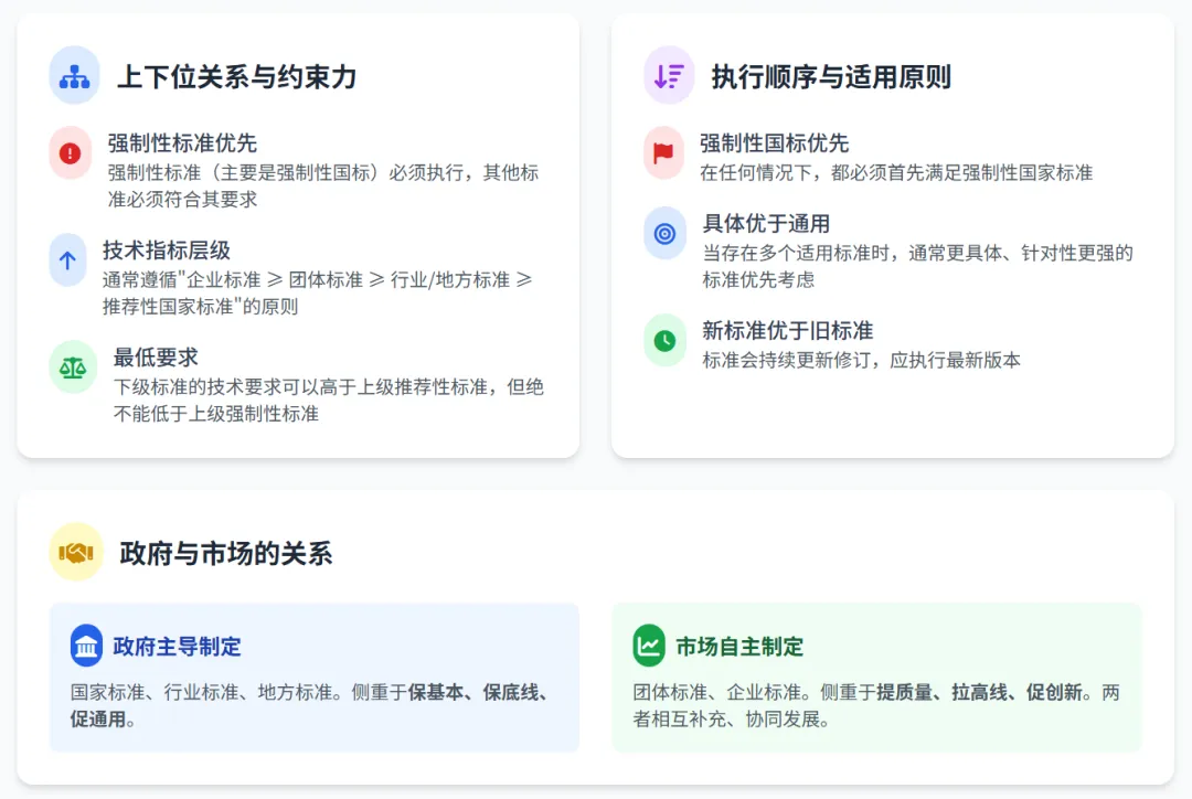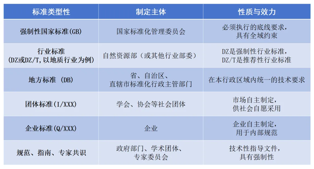 首先,标准文件的制定和发布的时间不同,历史背景不同,前一个文件在当时认定为正确的观点和合适的计量,可能后来被证实是错误的,不能满足现阶段的技术要求。因此就出现了“标准打架”的情况;其次,各类标准的标准类型、制定主体、性质与效力及其特点与适用范围不同;第三,各类标准和执行依据的效力层级不同。遇到不同的标准对同一事件的要求不一致时,切记以下原则:强制性标准(国家标准、行业标准)优先,强制性标准是必须遵守的底线,其他任何标准的技术要求都不得低于强制性标准的要求。遵循 “企业标准 ≥ 团体标准 ≥ 行业/地方标准 ≥ 推荐性国家标准” 的原则,下级标准的技术要求可以高于上级推荐性标准,但绝不能低于上级强制性标准。新旧标准对同一问题有不同规定时,通常新版标准优先,但需注意旧标准的状态,看是否被明确废止。在推荐性标准(如GB/T, DZ/T)和团体标准中,可以选择执行更严格、要求更高的标准。地方标准仅在其发布的行政区域内有效。跨区域经营或操作时,需同时遵守两地标准中更严格的要求。在工作,要做到:牢记底线,强制标准必须遵守;注意标准更新与废止,新优于旧,密切关注标准更替。遵守标准,理解标准,吃透标准,才能更好地运用标准,让标准成为推动行业发展的 “助推器”。写这篇文章的原因是小编参与的项目遇到了规范打架的问题,MT/T 967-2005《煤中锗含量分级》(规范未废止,现行)中锗>20µg/g是高锗煤,GB∕T 41042-2021《煤中有价元素含量分级及应用导则》中锗>30µg/g是高锗煤 (矿石品位)。《矿产工业要求参考手册》(以前无煤中镓含量分级的规范,因此使用该手册标准)煤中镓矿石品位应>30µg/g,GB∕T 41042-2021《煤中有价元素含量分级及应用导则》中镓>20µg/g是高镓煤(矿石品位)。因此,根据规范的强制标准优先原则、层级递进原则、就高不就低原则,煤中锗>30µg/g是高锗煤(矿石品位),煤中镓>20µg/g是高镓煤(矿石品位)。项目将煤中镓的矿石品位从30µg/g调整到20µg/g,大部分以前根据30µg/g的界线画的镓矿体范围或单点异常,根据20µg/g的界线重新圈定出面积更大的镓矿体范围,相应的镓资源量也大幅提升,更好的完成了项目绩效目标。