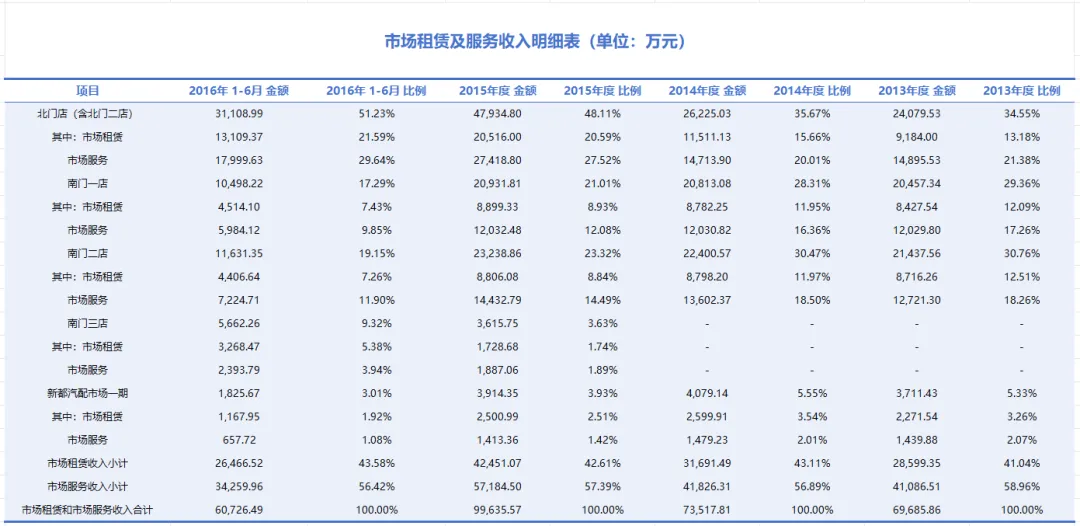公司的重要来源主要是市场租赁和市场服务业务,其中市场租赁收入是公司向商户收取的商铺租赁收入,市场服务收入则是公司向商户收取的市场管理服务费。