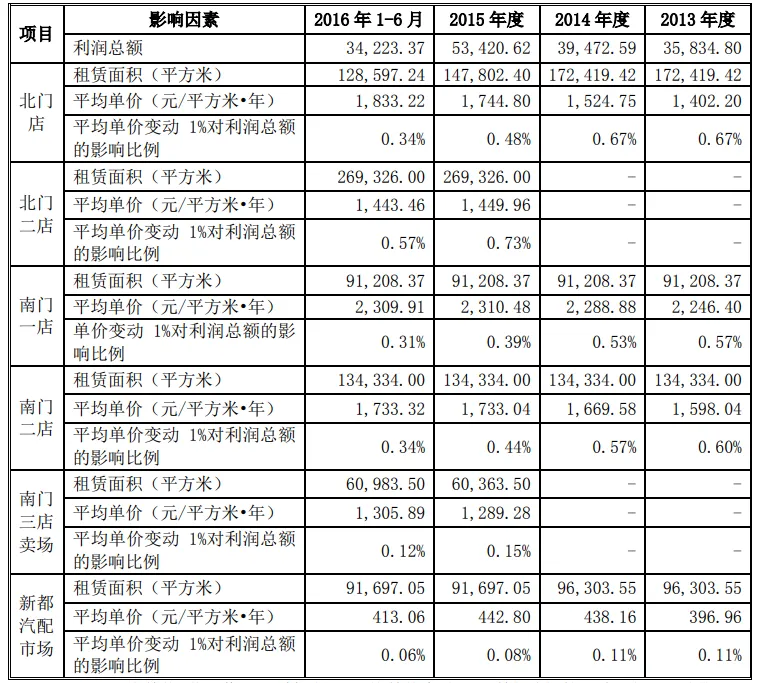 从他们的租赁平均单价也可以看出:富森美的核心也是北门店、南门一店以及南门二店,其中新建的北门二店可租赁面积最大,而位于地段核心的南门一店单位租金最高。
