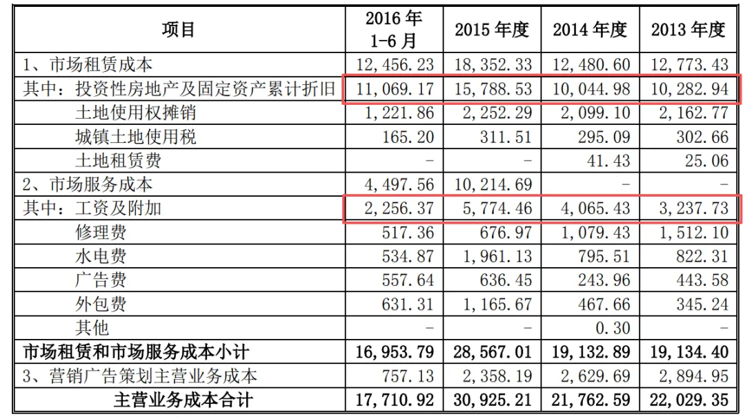 再从营业成本来看,我们可以知道富森美这种商业地产生意,其成本大头是折旧费(购地后直线法折旧)以及人工费。