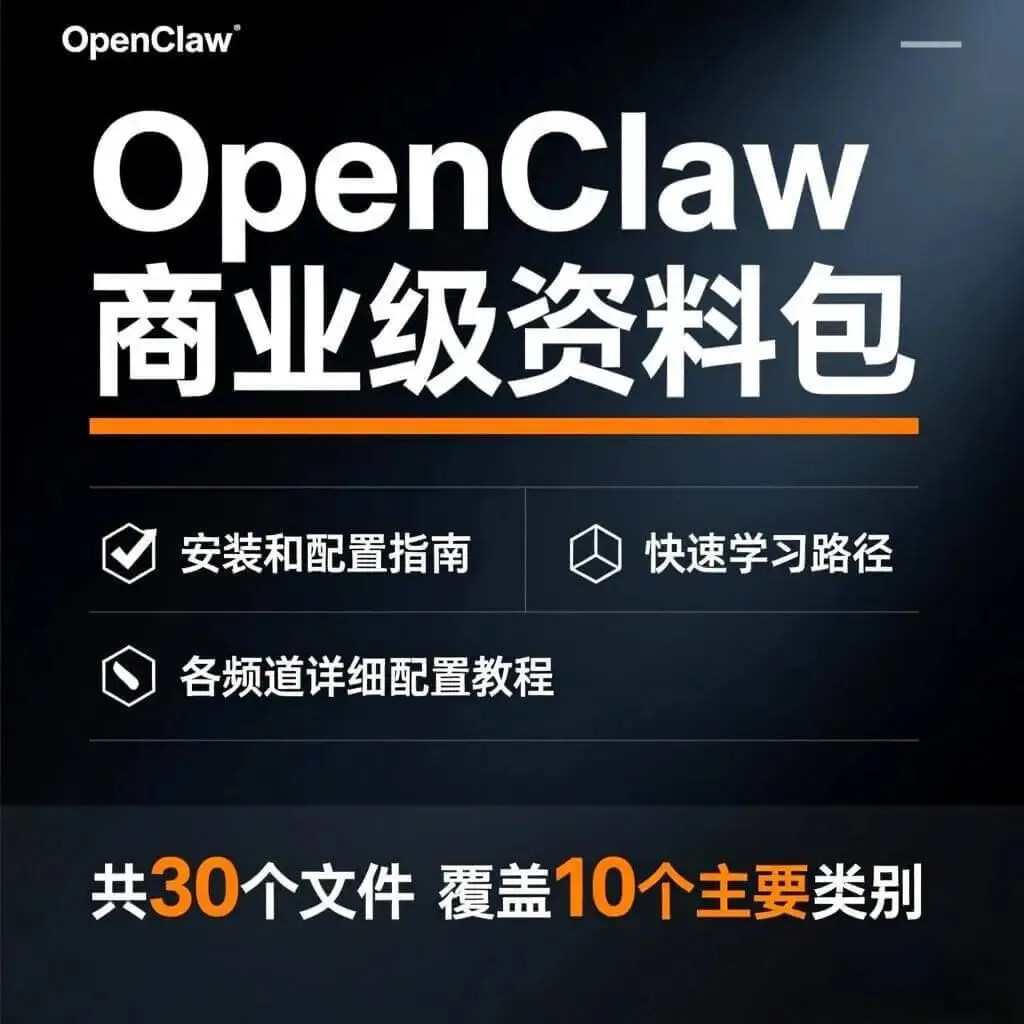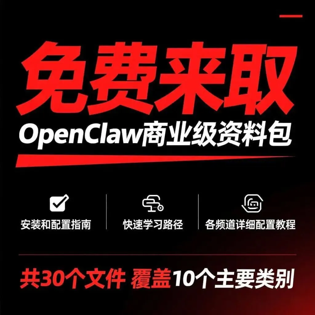 我们整理了目前最完整的OpenClaw商业级学习资源包——30个文件、10大类别全覆盖,从零基础入门到高阶实战落地,一站式解决所有学习障碍。更重要的是,这份资料限时免费开放领取,错过可能再难遇到。