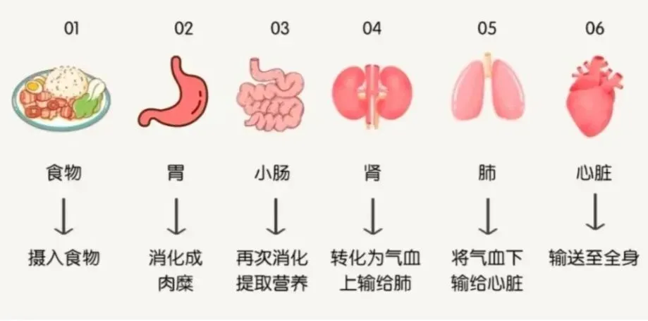 ②脾:脾统血,是气血生化之源,负责将食物转化为气血并固摄血液。脾胃气虚则带脉不固,易出现带下、血崩等病症。