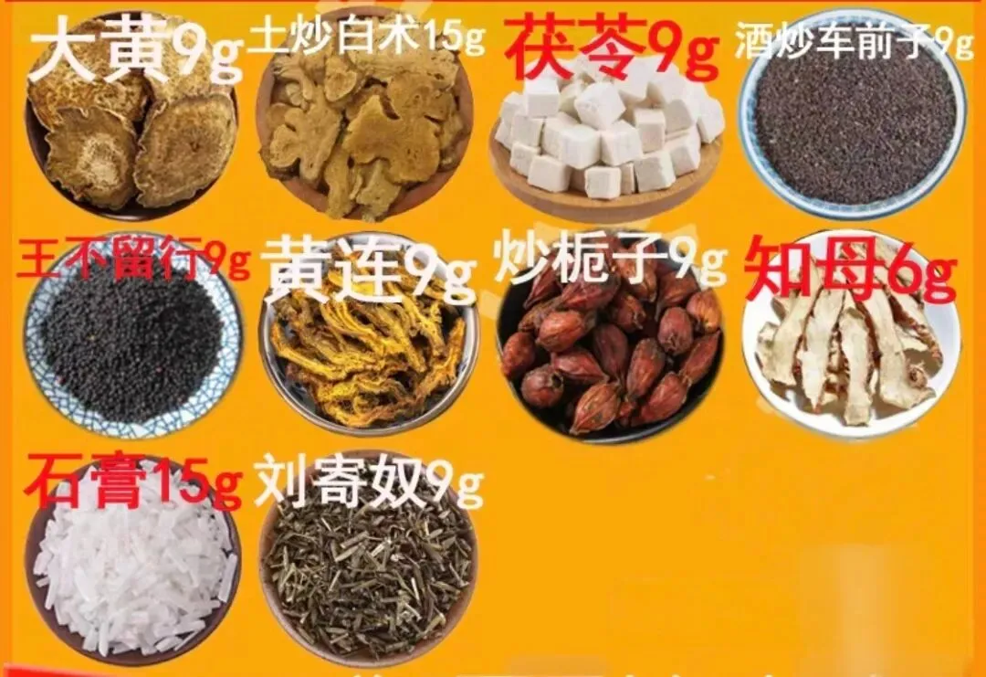 刘寄奴:9-15克①清热泻火:方中石膏、知母、黄连、栀子等药物协同作用,可清泻胃火、三焦湿热,缓解因火热内盛导致的发热、口渴、面红等症状。②利湿渗湿:白术、茯苓、车前子等健脾利湿,促进湿热之邪通过小便排出,改善带下色黑、质粘稠、阴痒、尿黄灼痛等湿邪下注的表现。③化瘀止带:王不留行、刘寄奴活血通络,有助于消散瘀血阻滞,对带下色黑如黑豆汁、腹中疼痛、少腹刺痛等瘀热交阻之症有缓解作用。总结:利火汤以清热泻火、利湿化瘀为核心功效,主要用于治疗妇人带下色黑、湿热火毒内蕴之证,现代临床也常用于盆腔炎、宫颈炎、前列腺炎等属湿热瘀阻的病症。需注意,本方药性峻猛,适用于实热体质,虚寒或脾虚湿盛者慎用。六.遇到带下都可以先用完带汤,如果没有效果,再看赤、青、黄、黑:傅青主认为带下多与脾虚、肝郁、湿盛有关,而完带汤正是针对这一基本病机而设,具有补脾疏肝、化湿止带的功效,适用于最常见的白带清稀、量多、无臭、神疲便溏等脾虚肝郁证。若使用完带汤后效果不显,则需根据带下的颜色进一步辨证施治。