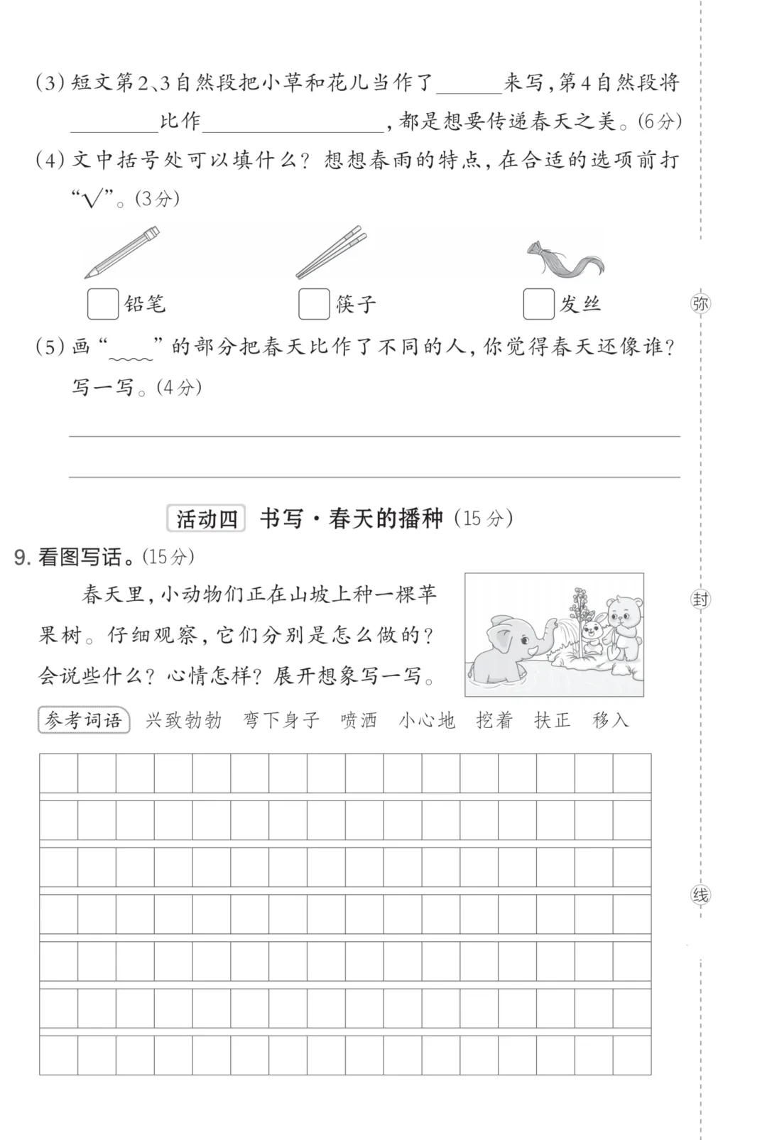 三下语文1-8单元测评卷+答案