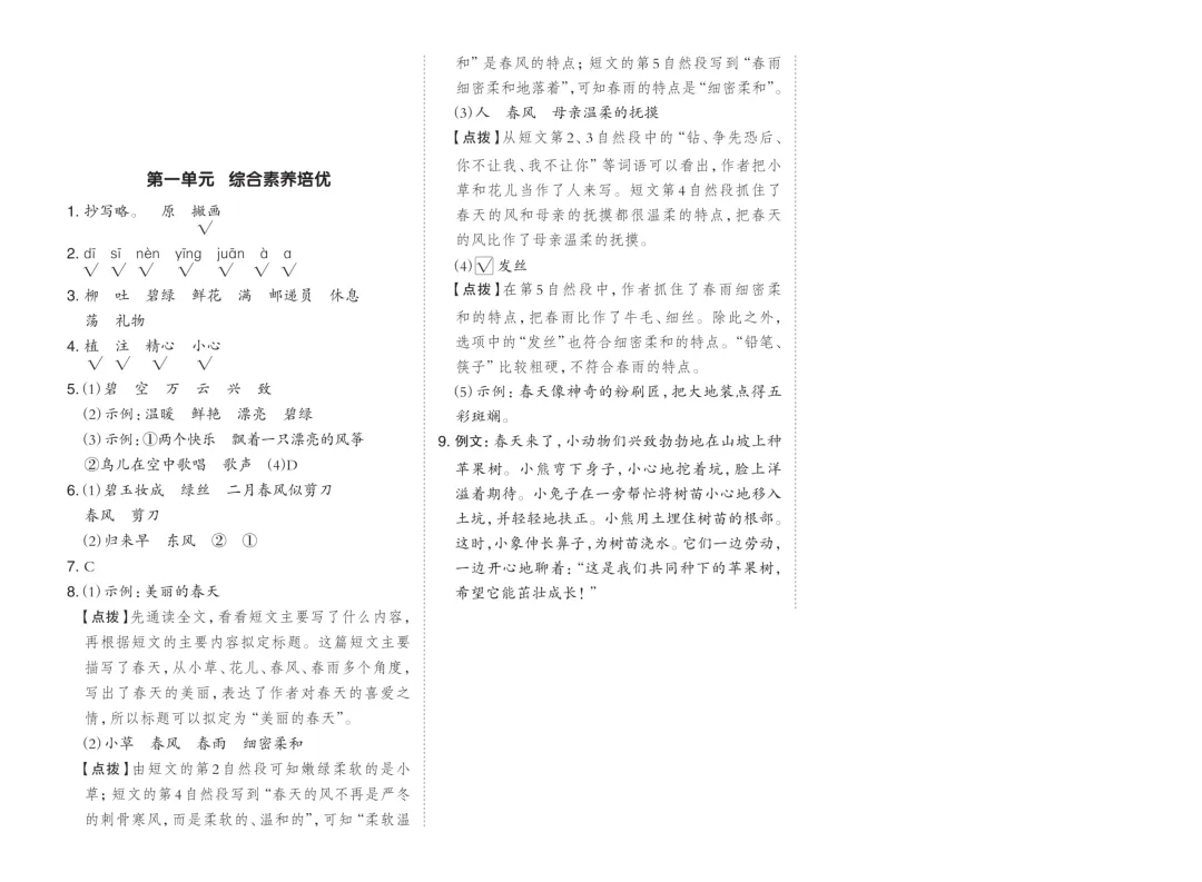 学习资料|二下第1单元综合素养培优卷(含答案)