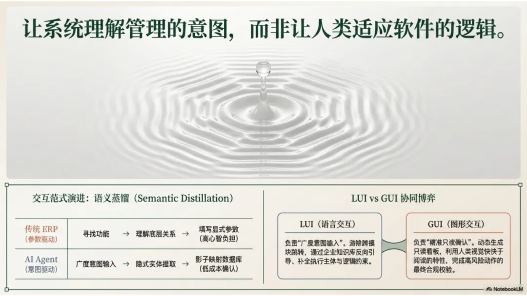 AI Agent 的出现标志着交互范式的根本性进化:从“让用户理解软件逻辑”转变为“让系统理解管理意图”。