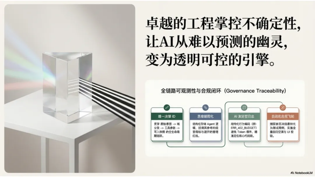 - 工程层:建立全链路可观测性,让 AI 行为可审计、可进化。