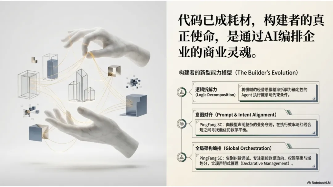 对于企业级产品的构建者(Builder)而言,核心使命不再是“如何通过代码实现功能”,而是“如何通过 AI 编排业务愿景”。
