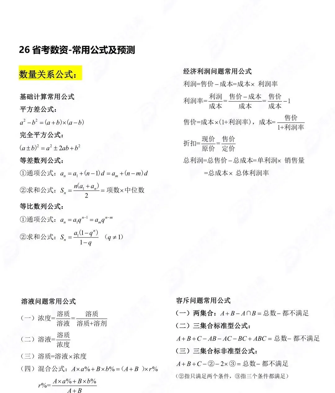 所以灯塔找朋友“讨”了一些数量和资料的【高频公式】,附带有一些练习题,无废话、无冗余,全是考场直接能用的“提分干货”,不管你是零基础小白,还是冲刺拔高的考生,收藏背会,行测直接多拿积分分!