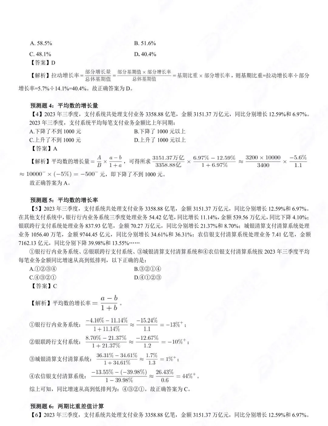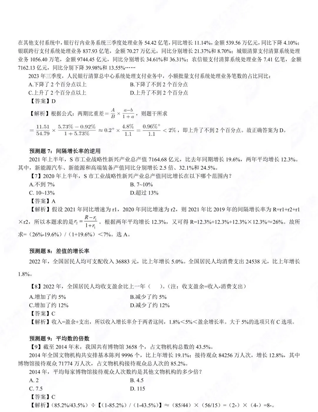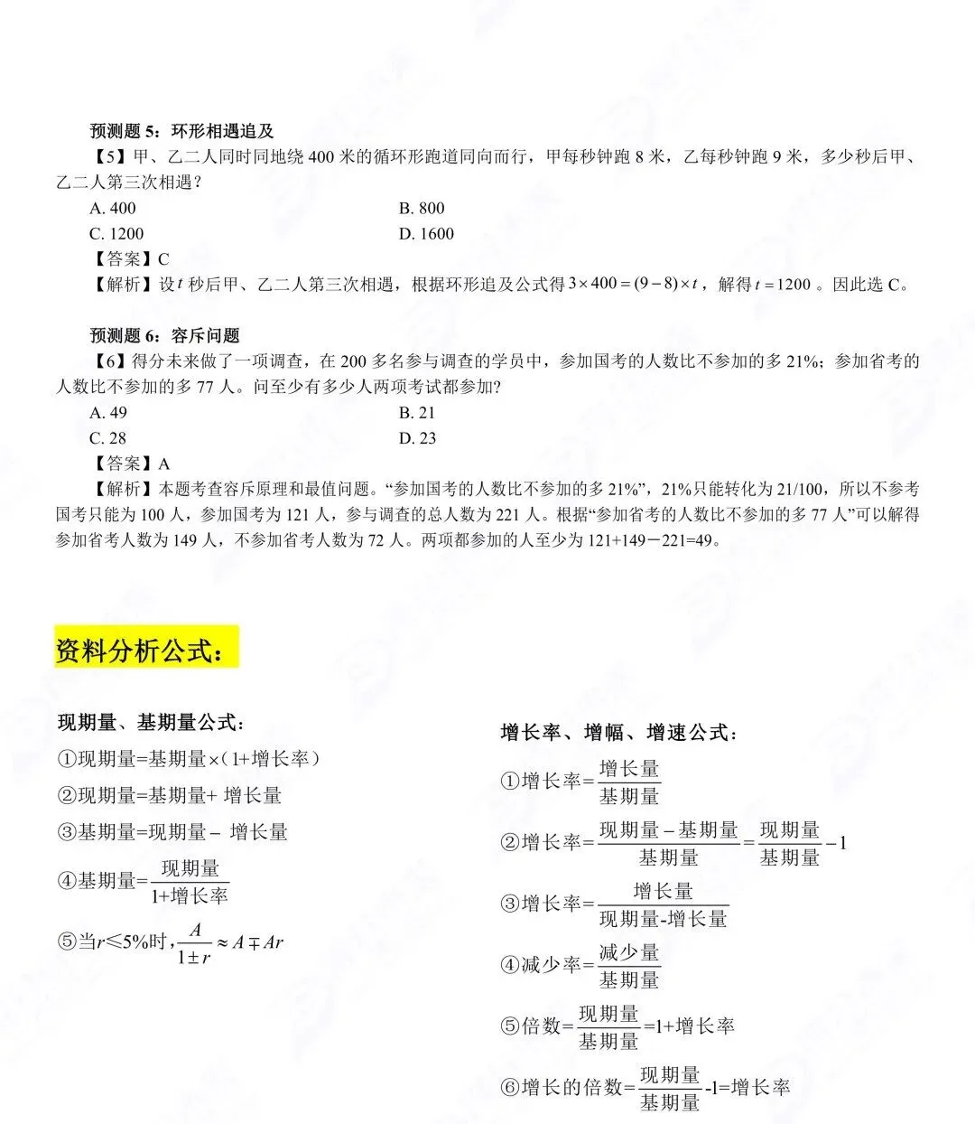 2. 资料分析先看问题,再找材料,定位关键词(基期、现期、增长率),再套公式,避免盲目找数据;