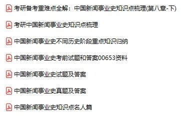 今天分享的资料是「0400-中国新闻事业史」电子版+学习笔记+知识点总结+期末考试重点+复习资料+习题集及答案+名词解释+历年真题试卷及答案+题库及答案+复习重点+思考题及参考答案+公式总结+考试重点基础题+知识总结+高清PDF可打印+免费分享!
