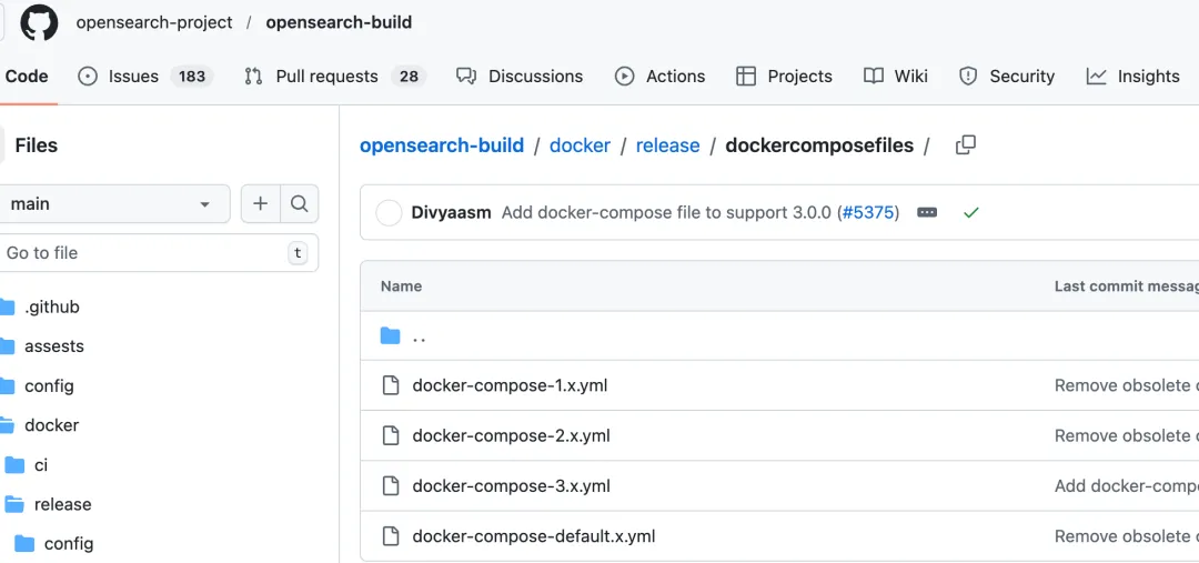 官方提供了Docker Compose示例,我这里选择的是3.x版本进行安装。需要特别注意的是,从OpenSearch 2.12开始,必须通过OPENSEARCH_INITIAL_ADMIN_PASSWORD这个环境变量来指定初始管理员密码。