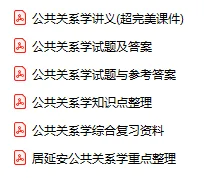 今天分享的资料是「0492-公共关系学」电子版+学习笔记+知识点总结+期末考试重点+复习资料+习题集及答案+名词解释+历年真题试卷及答案+题库及答案+复习重点+思考题及参考答案+公式总结+考试重点基础题+知识总结+高清PDF可打印+免费分享!