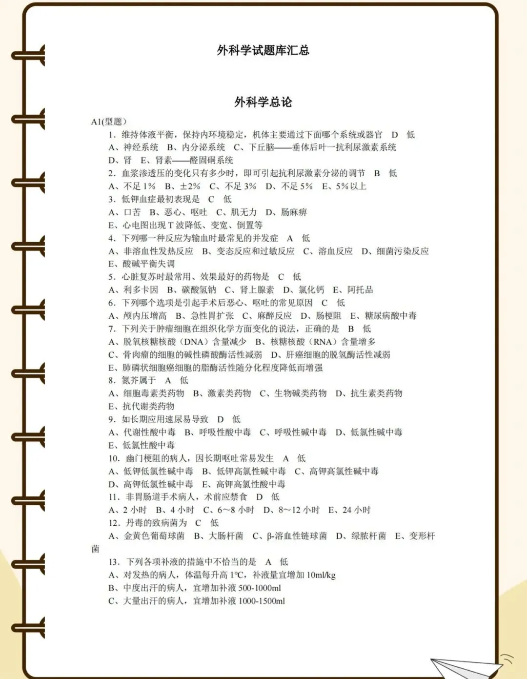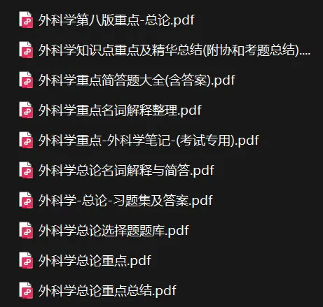 今天分享的资料是《外科学》学习笔记+名词解释+简答题含答案+选择题+重点梳理+PDF复习资料获取方式👉:滑动到文末查看资料获取方式;