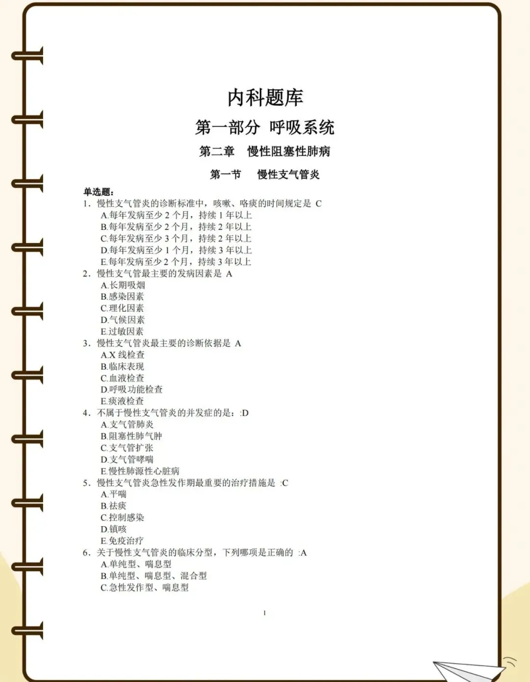今天分享的资料是《内科学》学习笔记+题库含答案+重点整理+名词解释+知识点梳理+PDF电子版获取方式👉:滑动到文末查看资料获取方式;