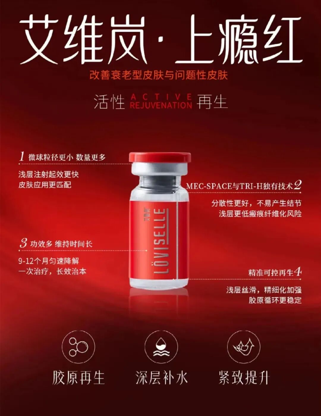 上瘾红的微球颗粒啊更小更均匀,适合用在真皮层,好处是不容易结节,可以平肤的更加的均匀,所以啊它的利用率会更高。