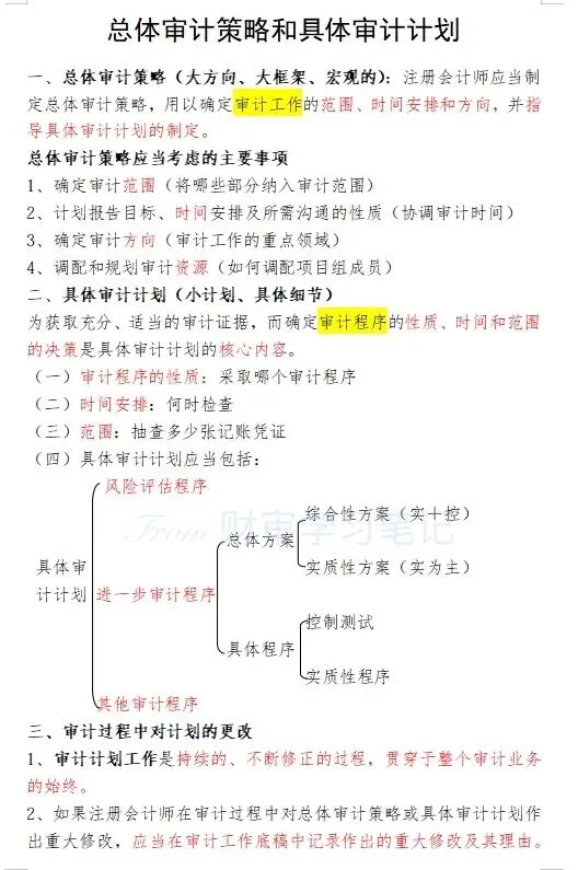 整体审计策略VS具体审计计划学习笔记