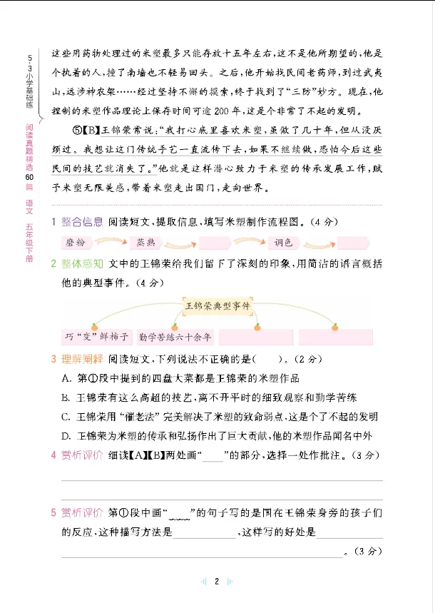 学习资料库 3-22【阅读真题60篇 五下语文 【共73页】】