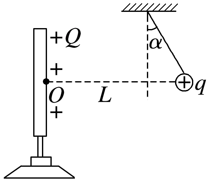 9.如图所示,金属板带电量为+Q,质量为m的金属小球带电量为+q,当小球静止后,悬挂小球的绝缘细线与竖直方向间的夹角为α,小球与金属板中心O恰好在同一条水平线上,且距离为L,重力加速度为g,静电力常量为k,下列说法正确的是( )