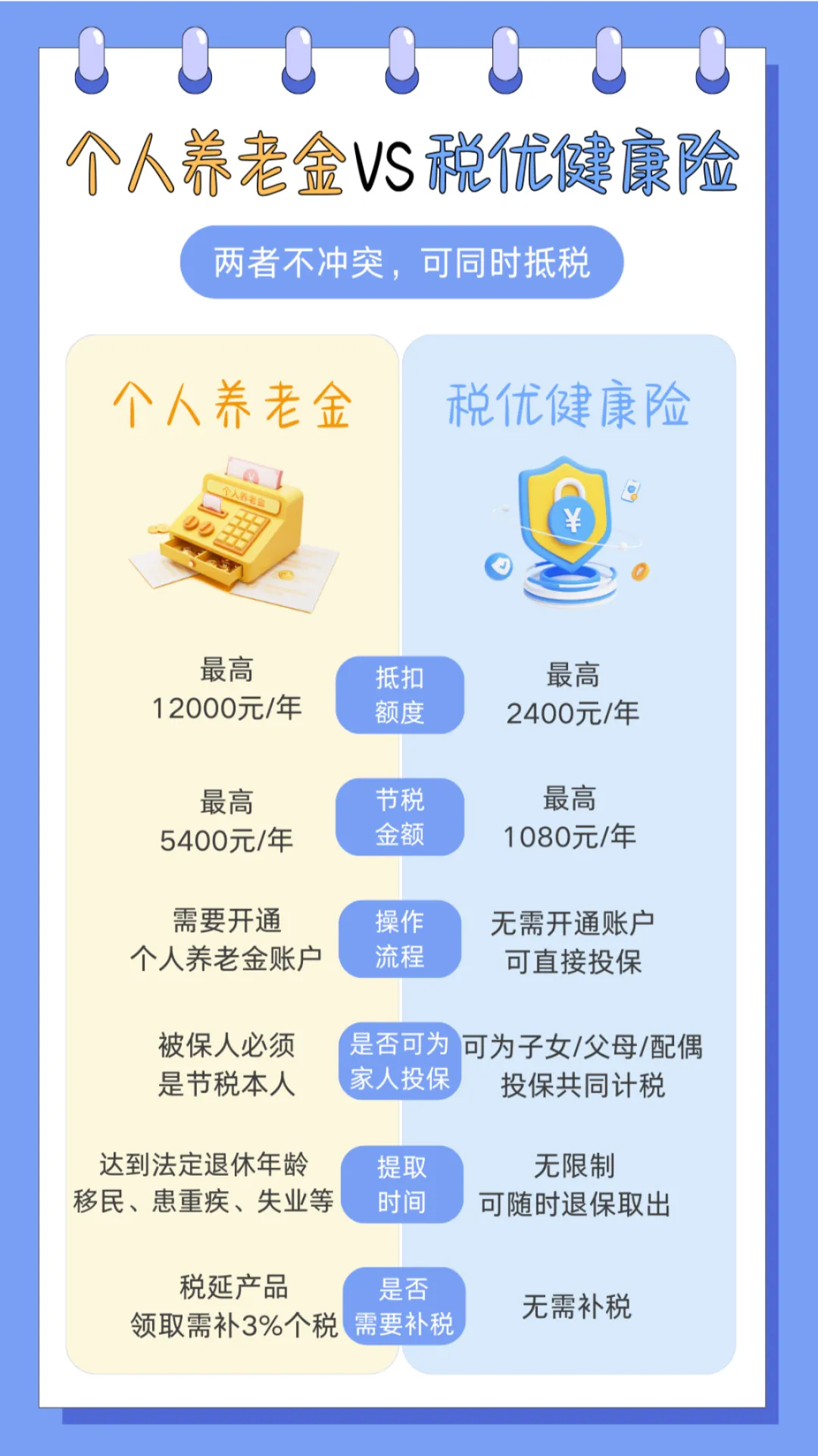 这类商业保险主要包含两种,一种是税优健康险,一种是个人养老金。
