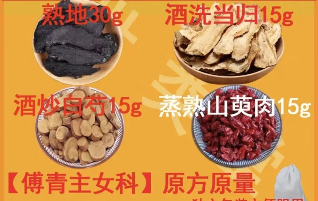 ②代表方“养精种玉汤”:熟地、山茱萸、当归、白芍四味药组成: 熟地滋肾填精,为君药; 山茱萸补肝肾、固肾精,助熟地滋肾; 当归养肝血、调冲任; 白芍柔肝缓急,与当归协同养肝血。大熟地(九蒸):一两(约30克)