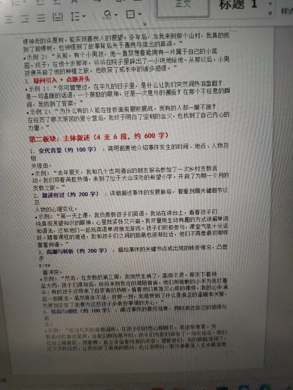 中考记叙文万能模板
