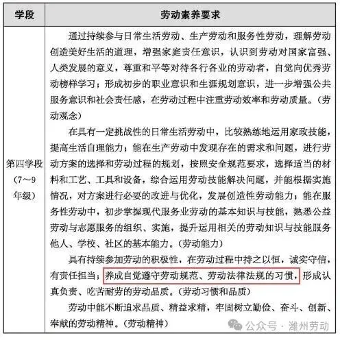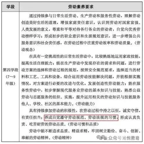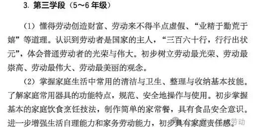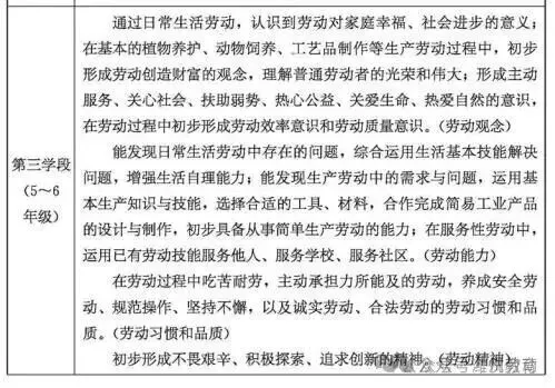五、劳动素养要求第三学段(5~6年级)第四学段(7~9年级)