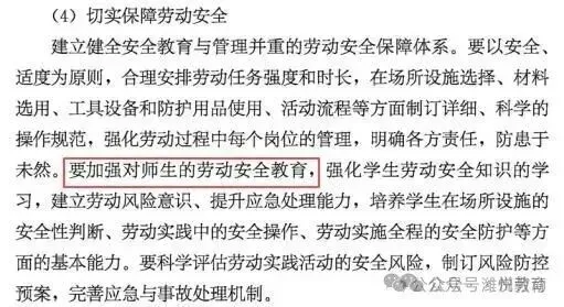 六、课程实施(三)劳动周设置建议2.劳动周的组织与实施 (4)切实保障劳动安全