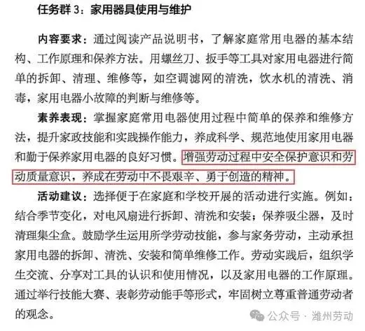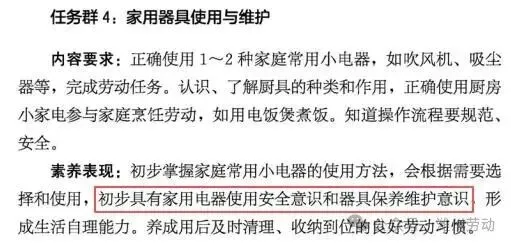 四、课程内容(三)第三学段(5~6年级) 任务群3:家用器具使用与维护