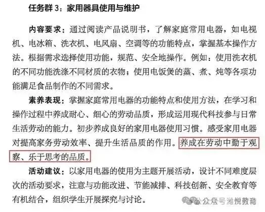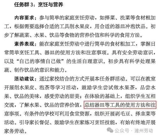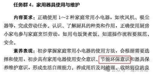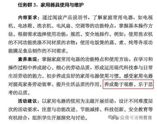 四、课程内容(二)第二学段(3~4年级) 任务群4:家用器具使用与维护 (四)第四学段(7~9年级) 任务群3:家用器具使用与维护