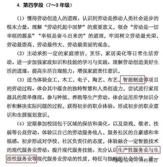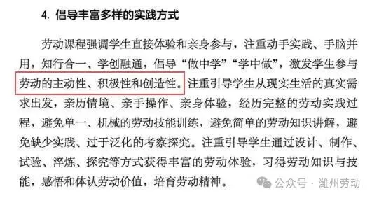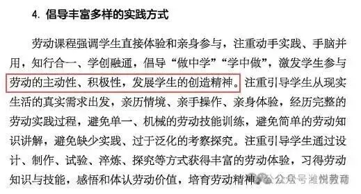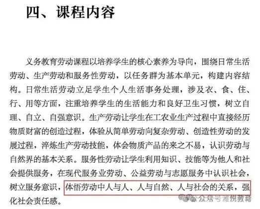 3.“养成在劳动中勤于观察、乐于思考的品质”变为“养成勤于观察、乐于思考的品质”,去掉了“在劳动中”,一是表述更简洁,二是说明“勤于观察、乐于思考”的品质不仅要体现在劳动中,而是要内化为学生的终身品质。