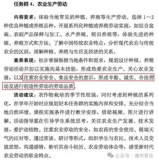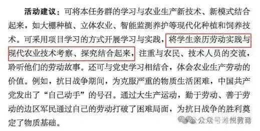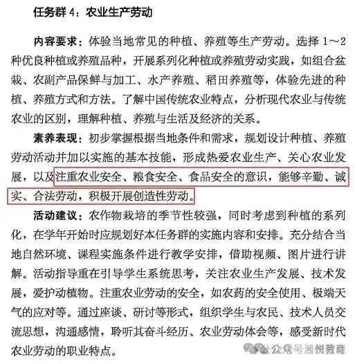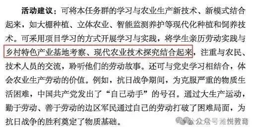 3.“将学生亲历劳动实践与现代农业技术考察、探究结合起来”变为“将学生亲历劳动实践与乡村特色产业基地考察、现代农业技术探究结合起来”,增加了“乡村特色产业基地考察”