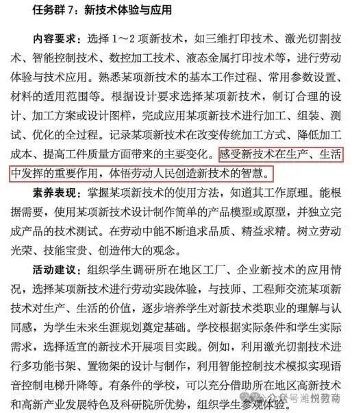 四、课程内容(四)第四学段(7~9年级) 任务群7:新技术体验与应用
